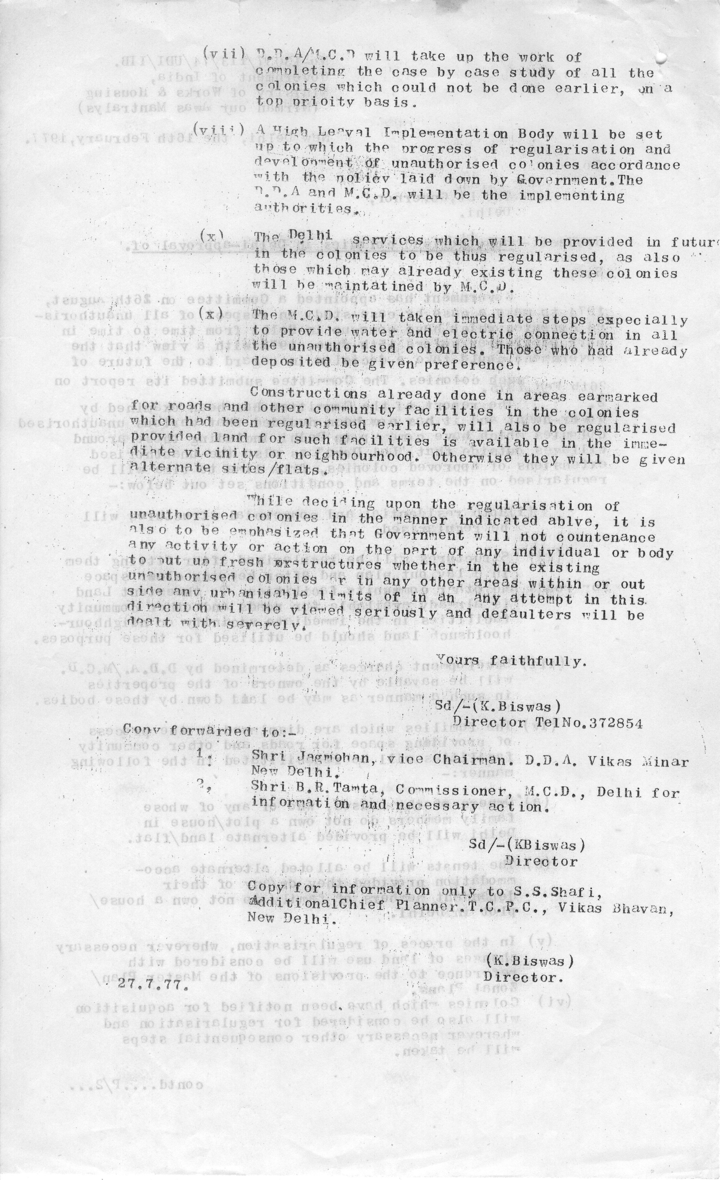 2.Development Project Cell provides civic amenities/facilities in regularization of unauthorized colonies.